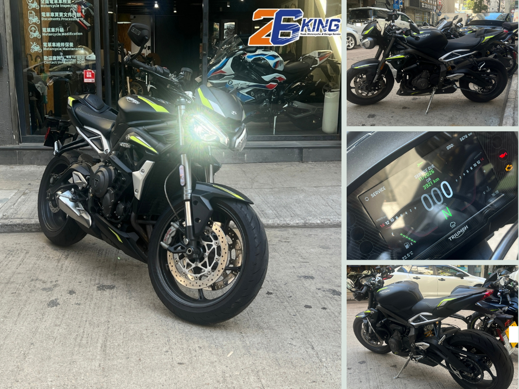 26KING陳列室現有一部0首2020 Triumph Street Triple 765RS放售,至今只行5679KM,全車已做檢查及打蠟清潔,更包括以下改裝:
